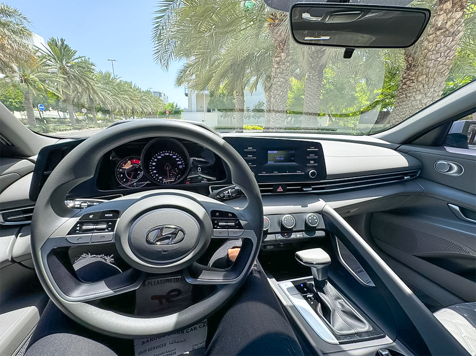Equipped with a refined automatic gearbox and Front-Wheel Drive (FWD) system, the Elantra ensures excellent stability, responsive control, and fuel efficiency. It’s engineered for effortless maneuvering through Muscat’s busy roads and Oman’s open highways.